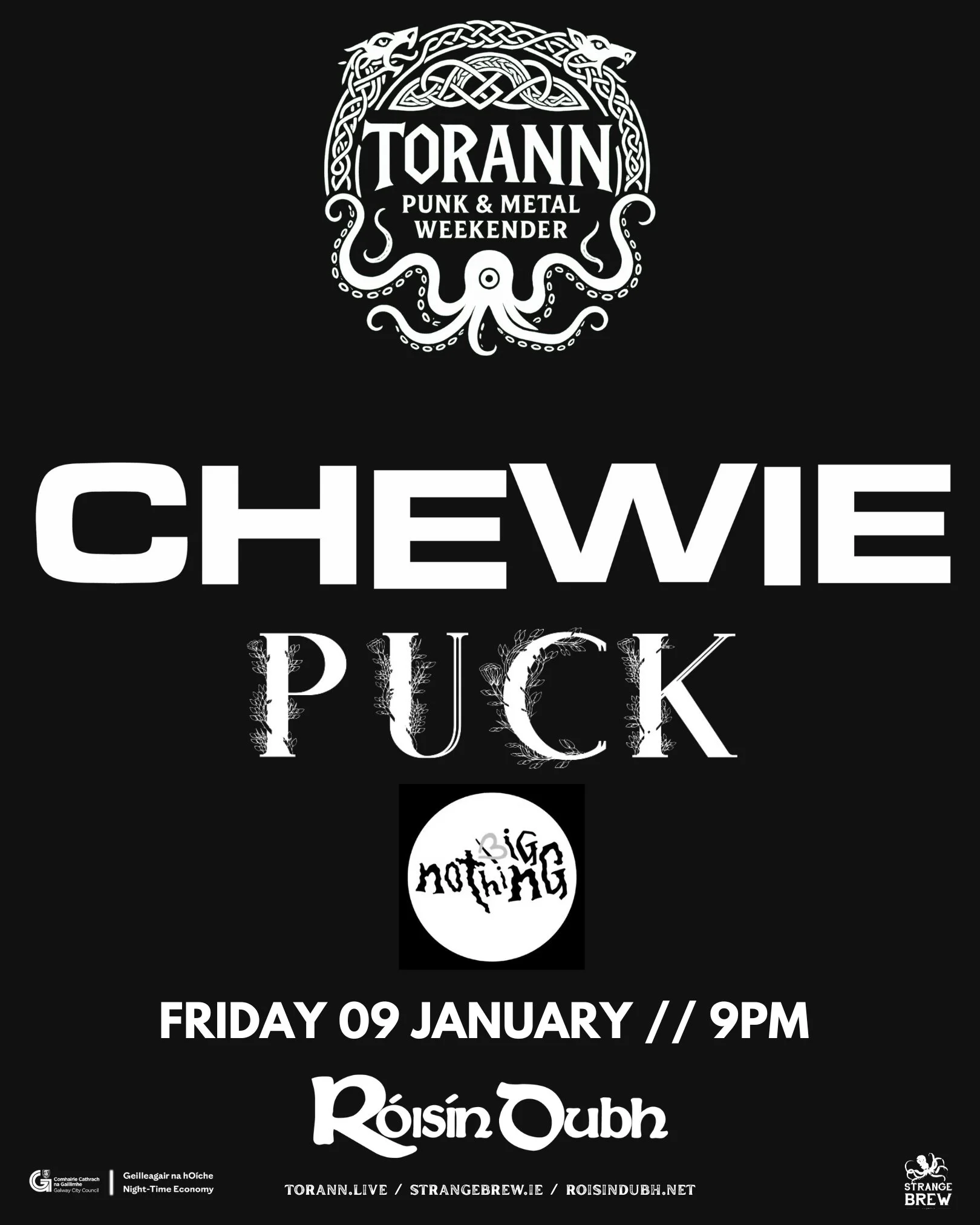 The inaugural festival weekend will see Chewie return to Galway to play RoÃsÃn Dubh on Friday 09 January, as well as free show from Shardborne and Ornith in Sally Longs, legendary metal band PRIMORDIAL headline on Saturday 10 of January, joined by Death The Leveller and Genuflection at RóisÃn Dubh, followed by a midnight show from Okus and The Hungry Buzzards. The weekend also features the panel discussion, Document, with Hope Collective and Irish Pop Archive, as well as an all ages all dayer and a merch fair, with further line-up announcements will be made in due course.