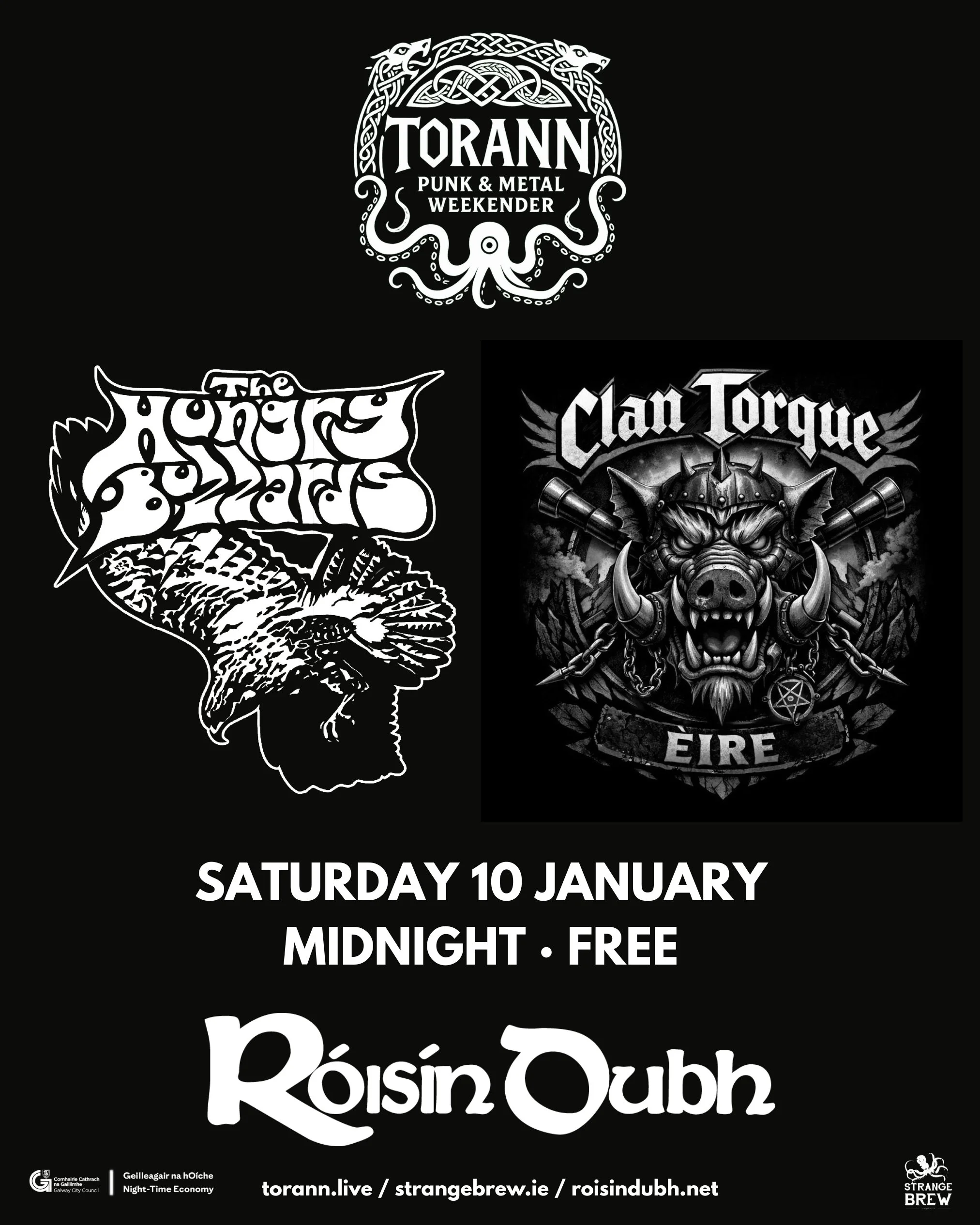 This January, the walls of Galway will shake: TORANN brings together the raw power of punk and the relentless force of metal for a weekend-long onslaught of riffs, noise and pure DIY spirit, presented by Strange Brew.